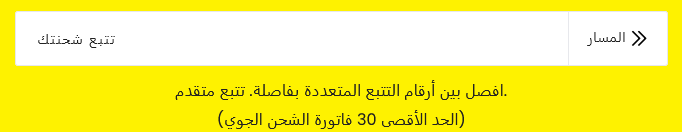 - من المربع بجانب كلمة (المسار) قم بإدخال رقم الطرد أو الشحنة كما هو في الصورة :